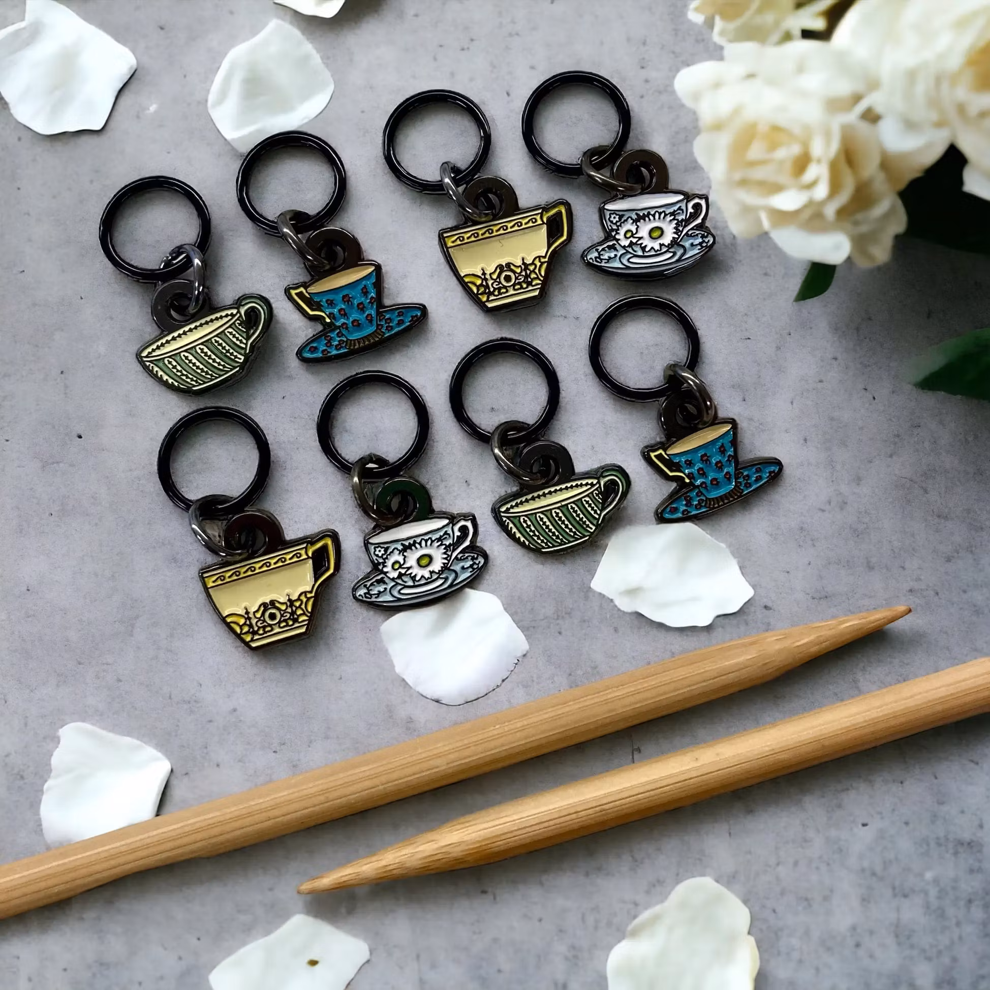 Fina stickmarkörer i form av 8 st muggar. Stickmarkörerna tillverkas av emalj i Kanada. Läs mer