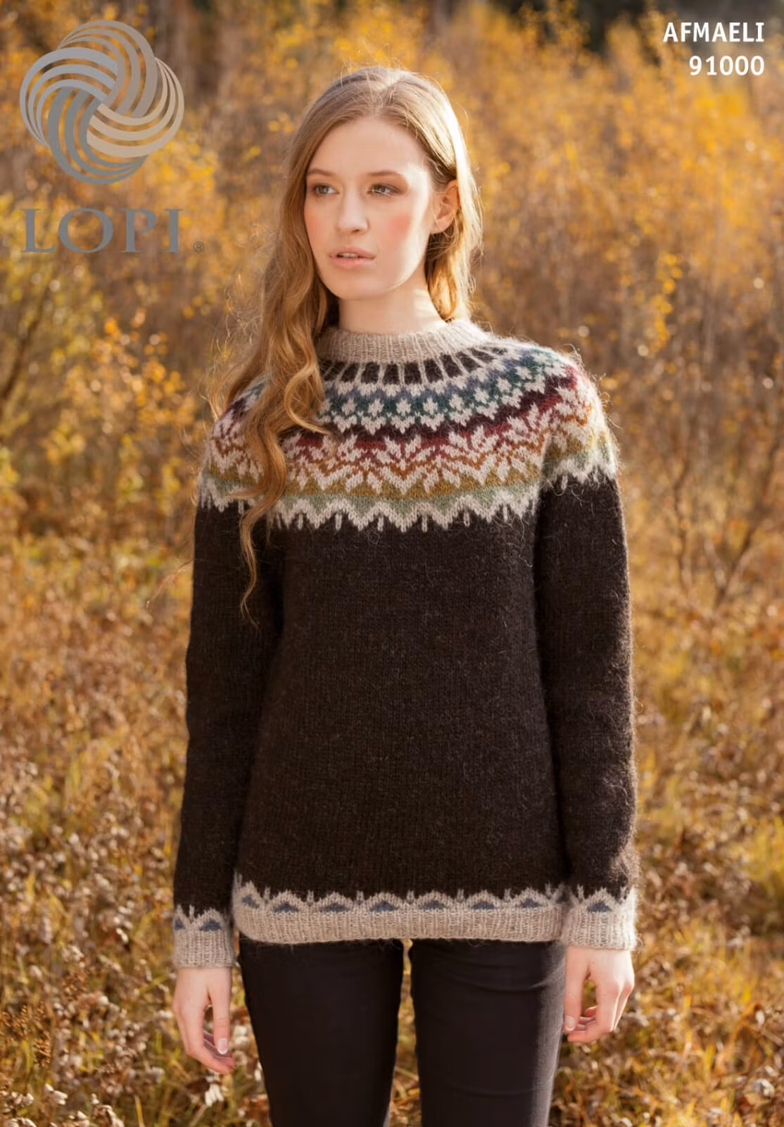 Afmaeli är en vacker islandströja som stickas i Lettlopi.