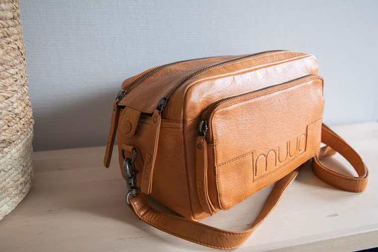 Muud är ett danskt märke, vars väskor tillverkas i Indien. Skinnen tas om hand från mjölkkor i området som fått leva utomhus under fria förhållanden och skinnen hade annars eldats upp.